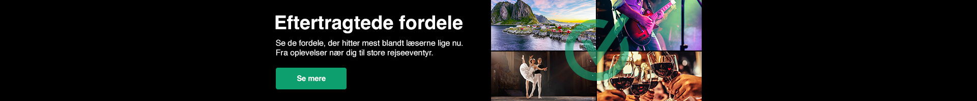 Naturoplevelser, foredrag, koncert, teater eller entré til dit yndlingsmuseum? Gå på opdagelse i masser af fordelstilbud til dig som abonnent.