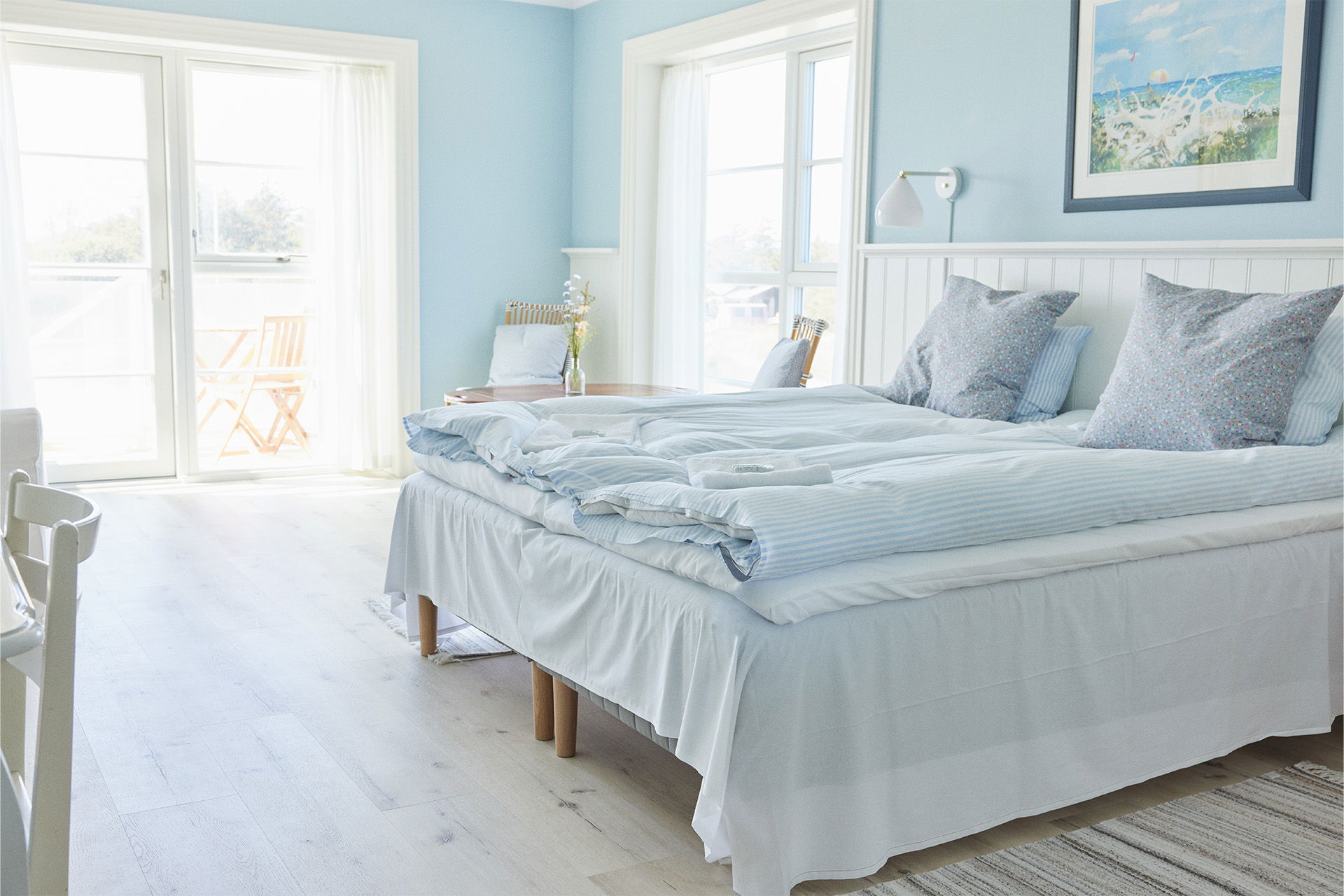 Det charmerende og autentiske værelse er derudover indrettet med en hyggelig siddekrog, der indbyder til at læse dagens avis eller en god bog. Her finder I en helt særlig ro i de historiske rammer - ganske som Anna Ancher engang beskrev det:" (...) her er nu godt at være, friskhed, luft, og så tillige den dejlige ro og stilhed, jeg elsker så meget, man bliver ikke forstyrret af noget som helst (...)"
