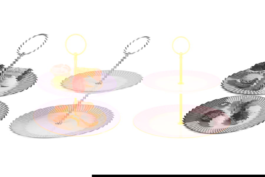 NYHED: Server kagerne på et elegant serveringsstativ i to etager med keramikfade indramme af guldfarvet kant. Fås i fire fine farver.
